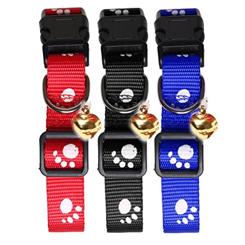 Descriptions: This pet collar is good designed and cute for your lovely dogs or cats It has a protection mechanism in the form of a breakaway buckle, which can release when the pet try hard to escape after caught by some pet catcher. Specification: Color: red, blue, black Diameter Length: approx. 8-15cm Width:1.9cm Weight: 27g Package includes: 3 x Pet collars