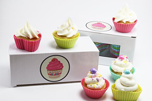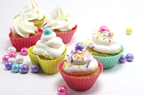 Made from food-grade silicone, these reusable, fun shaped cups are great for many uses. They are perfect for baking, candy making, or portioning out snacks, but also have other uses not related to food! Use them to create your own soaps, bath fizzes, or tiny tea light candles. Great for everything from organization to tea parties, these small silicone molds make sweet gifts as well. The star and heart shaped cups are approximately 1.5" in diameter, and the round cups are approximately 2" in diameter. All of the cups are approximately 1" deep. Each box contains 12 of each heart, star, and round shapes. **Note: food items pictured are not part of the sale.