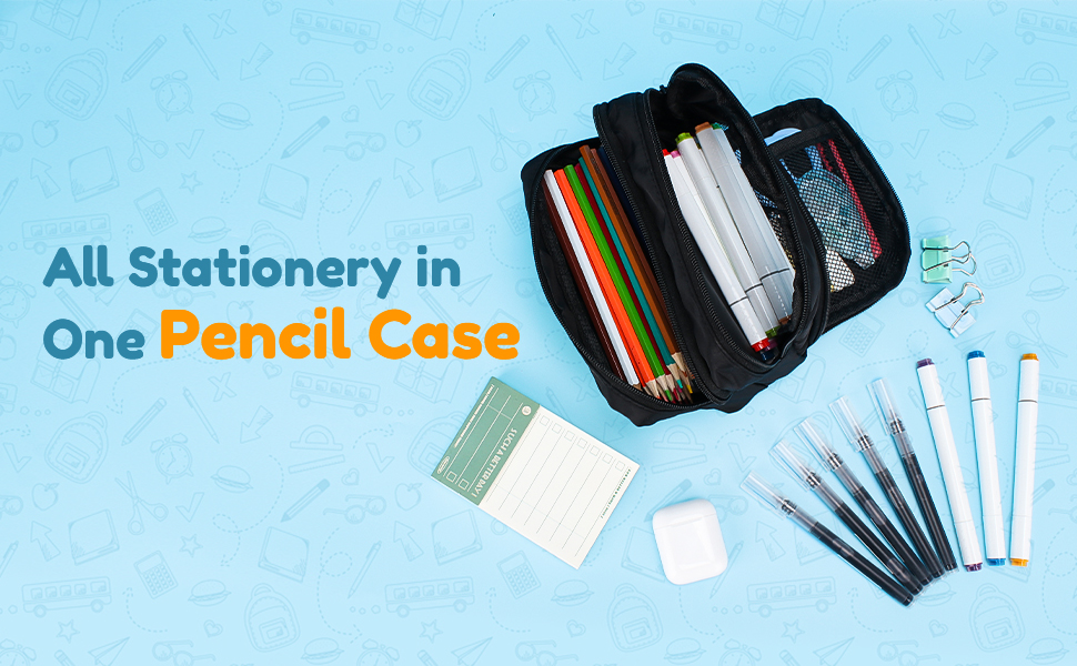 Black Pencil Case Large Capacity Pen Case With 3 Compartments | Desertcart Peru