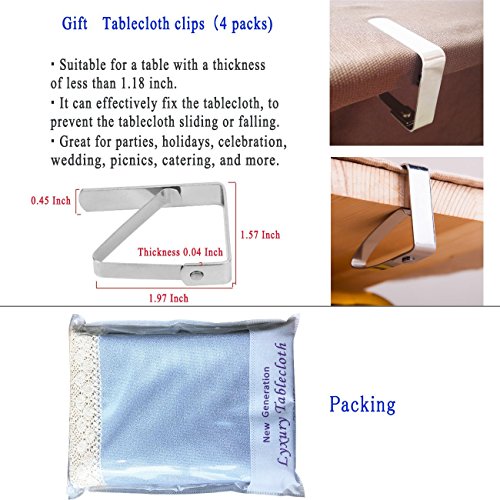 Our square tablecloths are Eco-friendly PVC material tablecloths. Because of their heavy construction and mufti-functional feature can perfectly protect your table cloth. Our square tablecloths great for indoor/outdoor use, like parties, holidays, celebration, wedding, picnics, catering, cafes, special occasions, dinners, brunches, potlucks, BBQ's, buffets, and more. Material:PVC+Lace Shape: Rectangle / Square Recommended Wash Type: For best results use mild soap with damp cloth or sponge on vinyl surface of tablecloth. Package Includes: 1 x Tablecloth+4 x tablecloth clips Care Instructions: 1.To extend the life of the table cloth, please do not place high temperature objects directly on the surface 2.Although all liquids, even wine bead up and won't leak through the tablecloth, wipe it clean with a sponge or napkin as soon as possible. Kindly Notes: 1、Please be reminded that due to lighting effects and monitor's brightness/contrast settings etc., the color tone of the website's photo and the actual item could be slightly different. 2、Due to the different methods of measurement will be few deviation. 3、 As the folding delivery, the arrival of goods may be a little crease, flattening will automatically resume after a period of time. 4、 Due to the nature of this environmentally friendly material, no deodorant is added. All newly produces have a special odors, it will dissipate within a few days. Our shop are selling varies patterns and different types tablecloths on Amazon. Please visit our shop for detail.