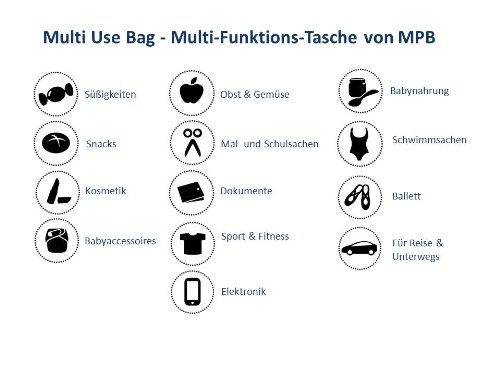 New Quality on the Market - Multi Use bag Multi function case Great design: Attractive and practical you can use it on most babies, Mamas, Papas and the whole family - one million ideas into one bag. Secure storage and transport thanks to the high quality zip'Waterproof "Interior specially also approved for food. For transportation of foods (e.g. fruit, bread, biscuits, sweets) and damp (e.g. wet wipes, diapers, wet clothing, swimwear, hand towels, etc.)Soft, smooth and Stoßmindernd Secure materials, tested for harmful substances (made in the EU) Handy loop with name label - perfect for wearing, hanging on the pushchair, hooks etc ; inner layer: 100% Cotton providing a top quality 100% polyurethane waterproof & breathable membrane Outer layer: 100% Cotton of the highest quality lined with soft foam made from 100% polyurethaneMulti functional pockets for: Mum/Dad & Baby: Dummy, rattle, baby food, diapers, medication, holding papers, cosmetics, mobile phone, sportswear, wet towels, swimming trunks, iPad etc. Baby Age: toys, candy, beads, rubber balls, vehicles, dolls, LEGO, books, for arts and crafts, and assets, the most beautiful stones or shells, sports and change of clothes, swimwear, etc. Travel and on the go: snacks, cosmetics, medicines, documents, electronic devices (Laptop, Mobile Phone Chargers, adapter), etc.Multi function pockets are available in 4 sizes:Size: XS - Dimensions: 12 cm x 20 cmSize S - Dimensions: 20 cm x 20 cmSize: M - Dimensions: 27 cm x 35 cm, additionally fitted with nickel-free press studs for reducing to 1/2Size L - Dimensions: 30 x 40 - Additionally fitted with nickel-free press studs for reducing to 1/2