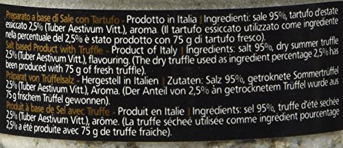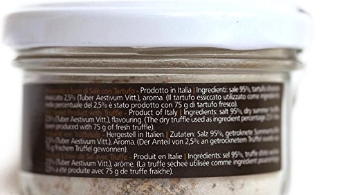 Black Truffle Salt (Truffle and Salt) is a product newly established but already very popular - not only in Italy - by truffle lovers for its potential use . RECOMMENDATION FOR USAGE:The homogeneous mixture of truffle and salt is ideal for flavoring dishes but in a particular way, also with roasted foods, braised, potatoes and tartar.