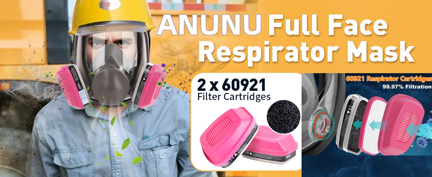 ANUNU Full Face Respirator Mask, Respirator Mask with 60921 Filters Against Organic Vapor Gases for Resin Painting Chemicals Epoxy