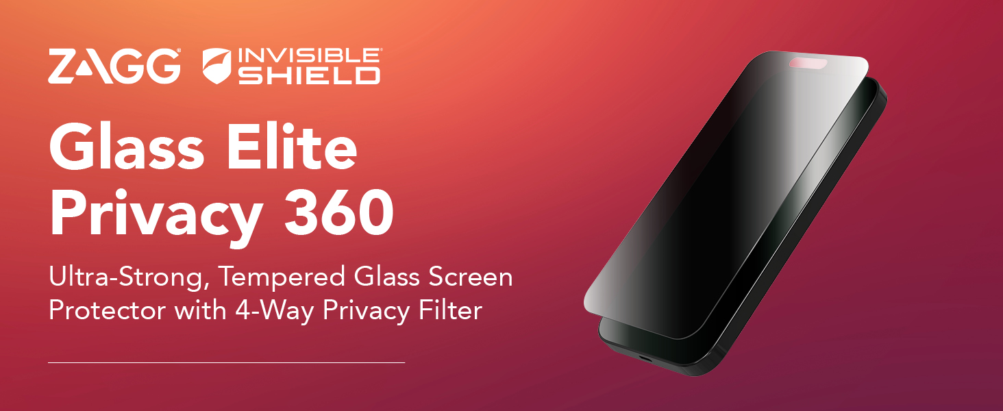 The ZAGG InvisibleShield Glass Elite Privacy 360 is a premium tempered glass screen protector designed for iPhone 15 and 16 (6.1-inch). It features a four-way privacy filter to block side views, is 5x stronger than traditional glass, and offers superior scratch and smudge resistance with ClearPrint technology. Made with up to 30% recycled glass and FSC-certified packaging, it combines eco-conscious materials with antimicrobial treatment and easy, dust-free installation for a flawless, durable shield.