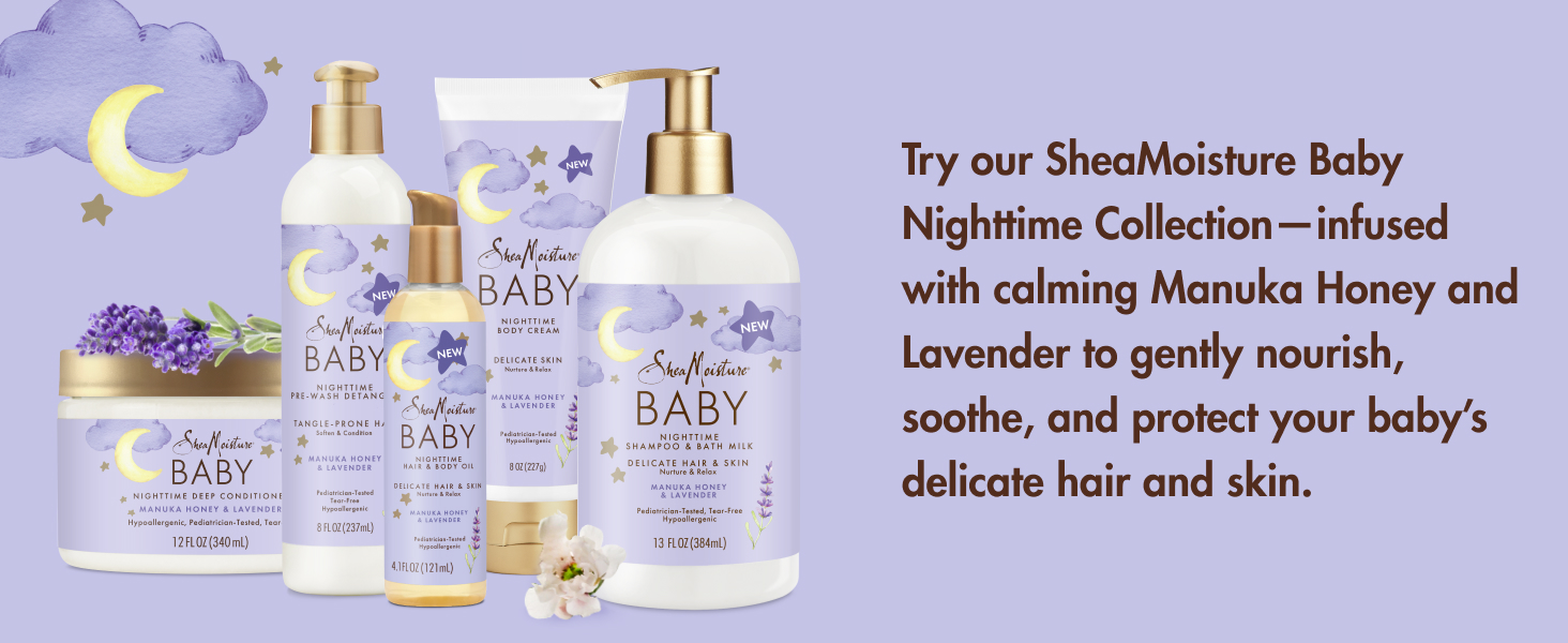 SheaMoisture Baby Moisturizer with Manuka Honey & Lavender is an 8 oz hypoallergenic, pediatrician-tested cream designed to deeply hydrate and soothe melanin-rich, textured baby skin and hair. Infused with plant-based oils, Manuka Honey, and calming lavender, it supports a relaxing nighttime routine while being sustainably produced, cruelty-free, and free from harmful chemicals.