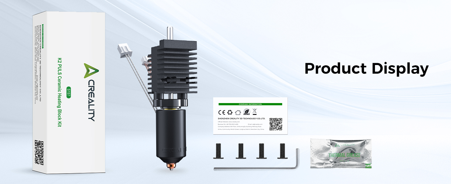 The Creality K2 Plus Ceramic Heating Block Kit is an official upgrade accessory designed for the K2 Plus Combo, featuring an all-metal integrated hotend and unicorn quick-swap nozzle. Powered by an 80W heater, it delivers a high flow rate of 40mm³/s at 280°C, 66% faster than previous models, and supports temperatures up to 350°C for advanced engineering filaments. Its leak-proof, smooth design ensures stable, clog-free printing with 1.75mm filament compatibility.