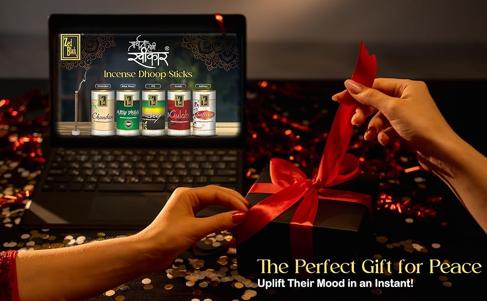 Zed Black Aroma Dhoop Sticks Combo offers 225 premium herbal incense sticks across five signature scents—Chandan, Gulab, Arij, Attar Phool, and Saffron. Each 17 cm stick delivers a long-lasting, fresh aroma designed to enhance meditation, prayer, or everyday relaxation. Packaged in five elegant tins, this combo ensures a continuous, pure, and inviting fragrance experience that transforms your home into a peaceful sanctuary.