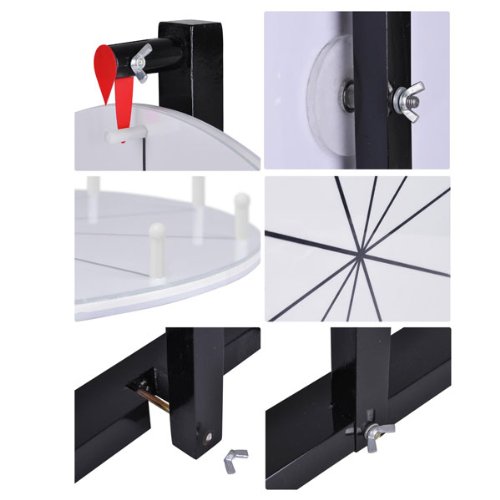 This Tabletop 15 Slot Spinning Prize Wheel is perfect for use anywhere. Add a little excitement to drawing for prizes! Features: - 15 customizable color prize slots for logo or text - Surface suitable for dry erase markers - Clickers between each segment for better speed control - Dual bearings for a smooth and balanced spin - Strong wooden base with black coating for better stability - Detachable stand for easy storage and convenient assembly - Red PP pointer "clicks" between each prize Package Content: - 1 Prize Wheel - 1 Water-based Mark Pen - 1 Whiteboard Eraser *Water-based mark pens are recommended for acrylic boards for easier maintenance. If you use oil-mark pens or pens in other type, it will be a little difficult to have the board cleaned easily. *If you need templates, we have e-templates in Microsoft Word. Please contact our customer service for details.